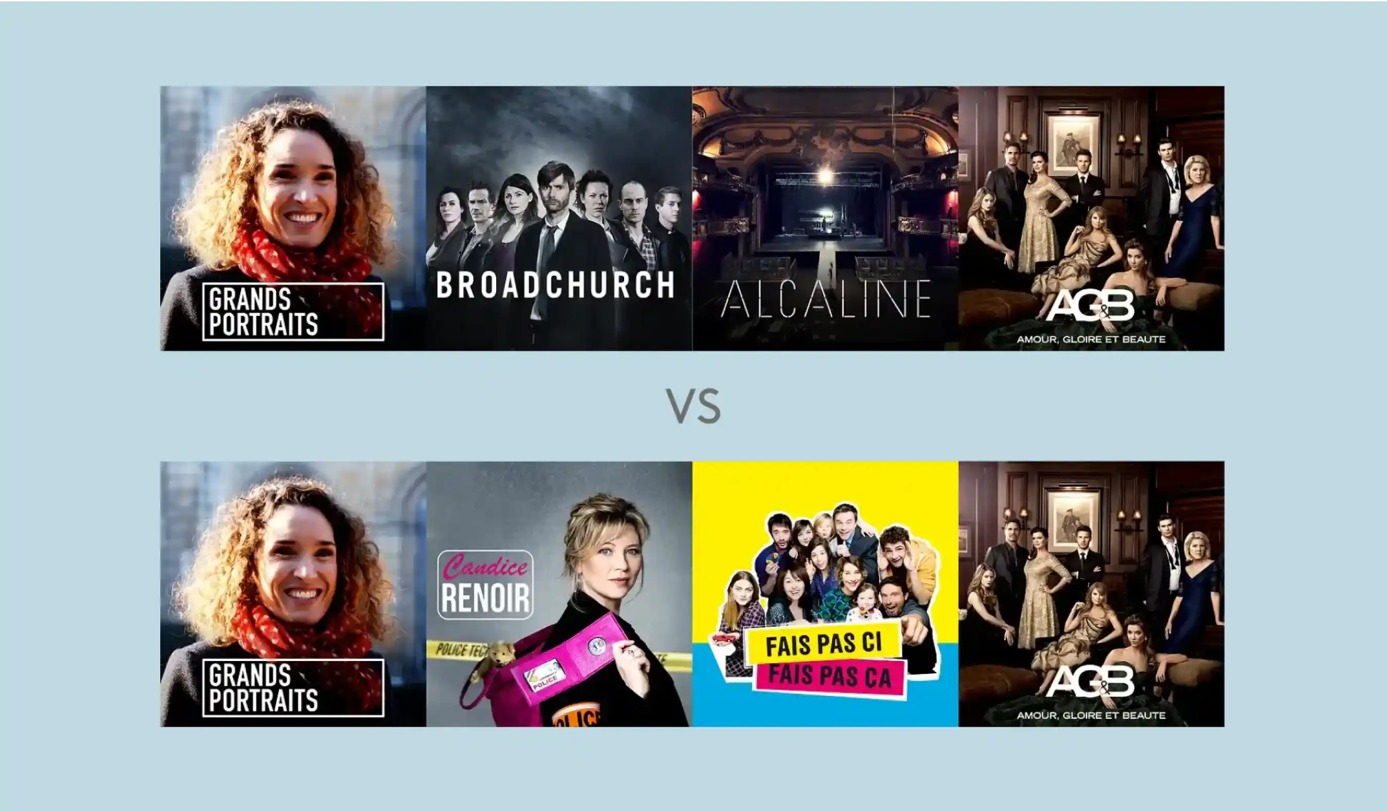 Ci-dessous, un exemple de différence entre les visuels M6, travaillés et réfléchis, et ceux de France TV Pluzz (2017)