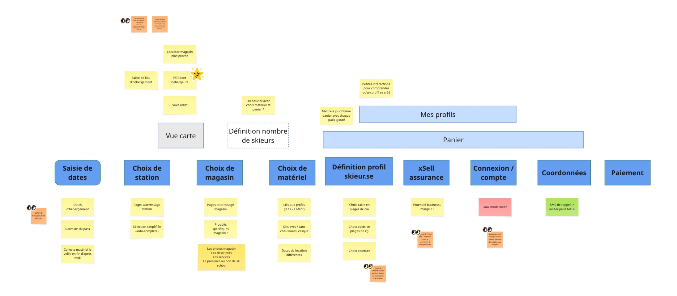 Pour amorcer le projet, nous avons analysé le funnel UX actuel, avec un focus prioritaire sur le mobile — canal majeur d’acquisition de Skiset.