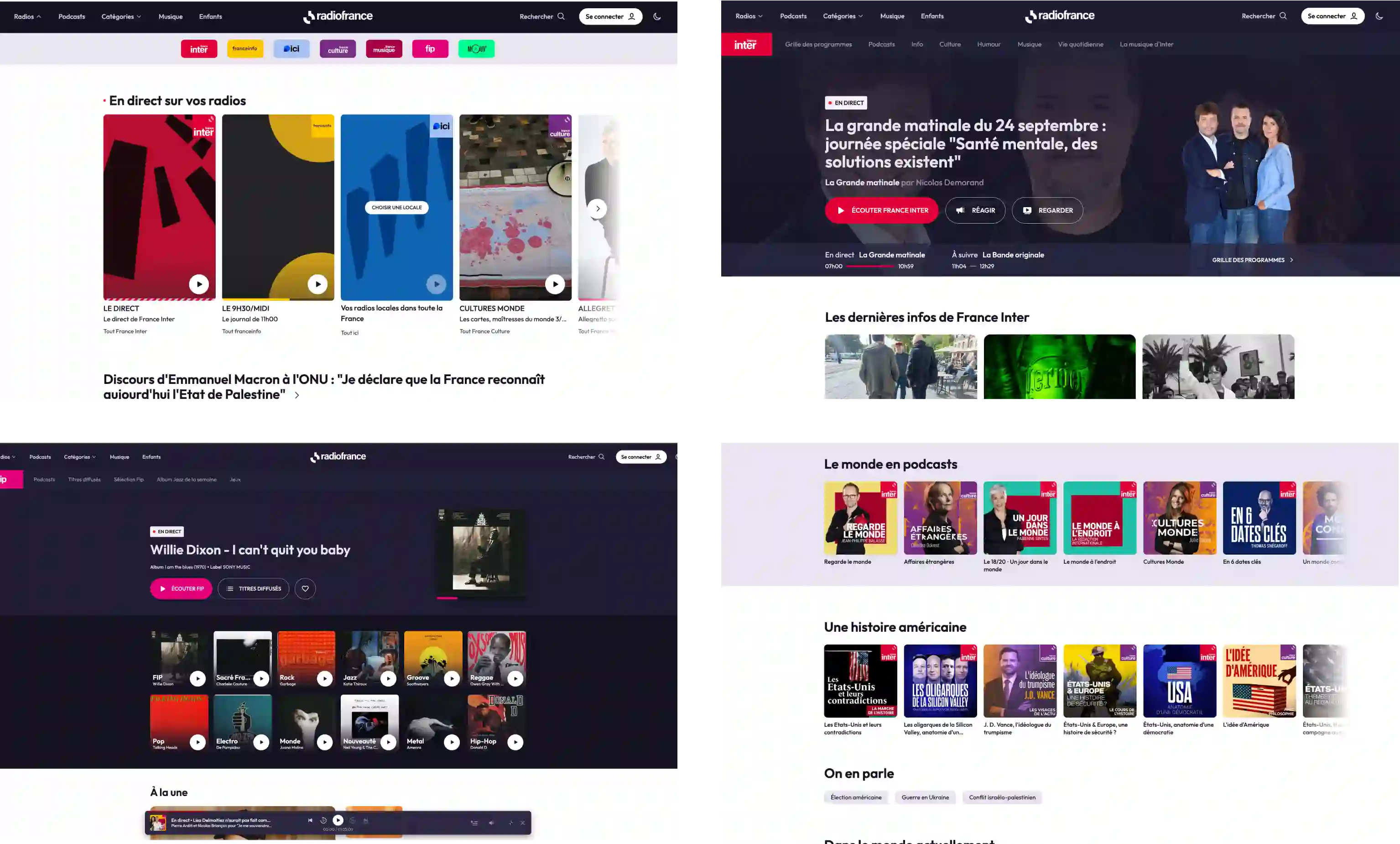 La refonte UX et UI a permis de regrouper 7 radios en une seule plateforme claire, intuitive et visuellement harmonieuse.